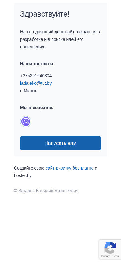 | AI-анализ | This online resource, m1nsk.by, is currently under development and in search of ideas for its content. The site is registered to the contact details +375291640304 and lada.eko@tut.by, located in Minsk. Users may reach out via social media or leave a message on the contact form provided. The site also offers a free website creation service through hoster.by. The form requires users to check the correctness of their email address and name before submission. |