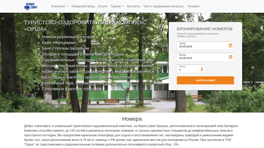 | SEO-описание | Турбаза в Орше - идеальное место для отдыха в Беларуси. Расположенный в живописном месте, наш санаторий предлагает широкий спектр услуг |