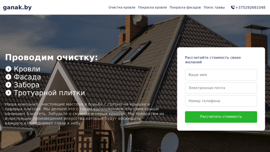 | AI-анализ | This website is a professional cleaning and painting service based in Belarus. It offers services for the cleaning and painting of roofs, facades, fences, and sidewalks at affordable prices. The company operates in various cities in Belarus, including Minsk, Mолодечно, Сморгони, Вилейке, Ошмянах, Островце, Борисове, Жодино, Бобруйске, Солигорске, Слуцке, Несвиже, Барановичах, Гродно, Лиде and others. They use high-quality materials and guarantee long-lasting results. Services can be booked by calling +375292681048. The website provides information on the cost of various services, including roof cleaning and painting, which starts at 2.5 rub. per square meter, |