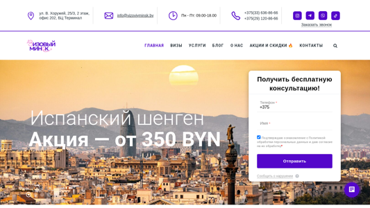 | AI-анализ | The web project "Visa Center in Minsk: opening a visa in the agency, services for document preparation and support" offers visa services for various countries including Europe, Asia, America, and Africa. The project guarantees the package of documents to be prepared under the key, with online registration, affordable prices, and delivery. |