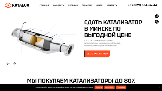 | AI-анализ | This website is a platform for selling used catalytic converters in Minsk, Belarus, under the brand name Katalux. The site offers a fair assessment and high price per kilogram for catalytic converters, allowing customers to find out where they can sell their used catalytic converters. The company buys catalytic converters for up to 80% of the price of precious metals on the London Stock Exchange. The site offers sections for ceramic, soot filters, and metallic catalytic converters, and users can submit a request for an evaluation with their contact information. The site also mentions a policy for handling personal data. The user can choose between visiting the collection point by appointment or having the company's manager come to their location for a preliminary evaluation. If the evaluation is successful, the user receives payment on the spot, and the catalytic converter |