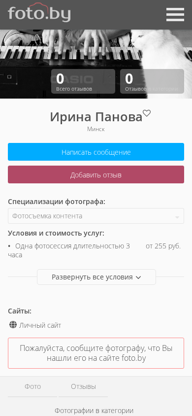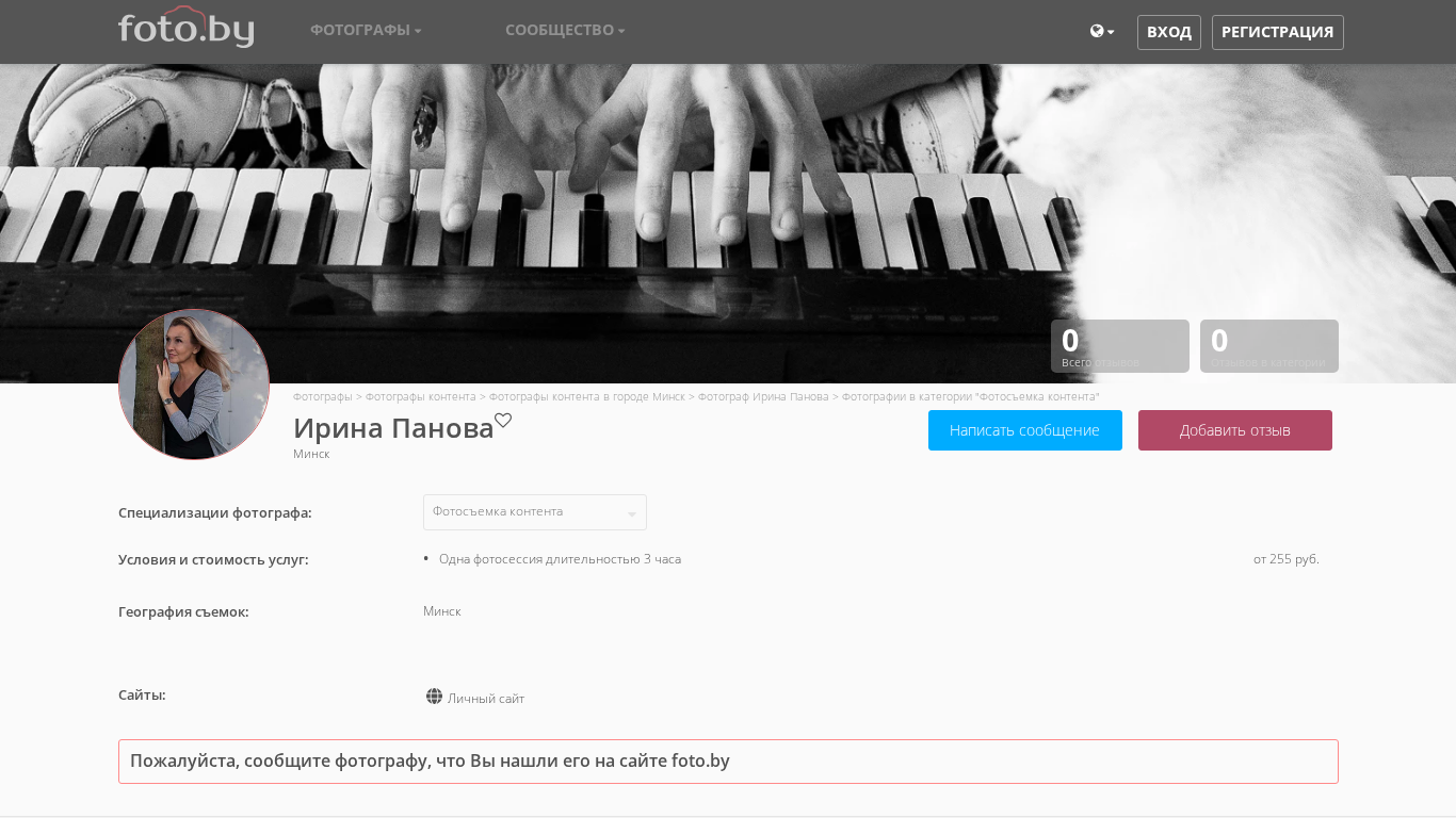| SEO-описание | Фотографии в категории "Фотосъемка контента". Сайт фотографа Ирина Панова. Я работаю как портретный фотограф в городах Минск, Бобруйск, Санкт-Петербург |