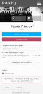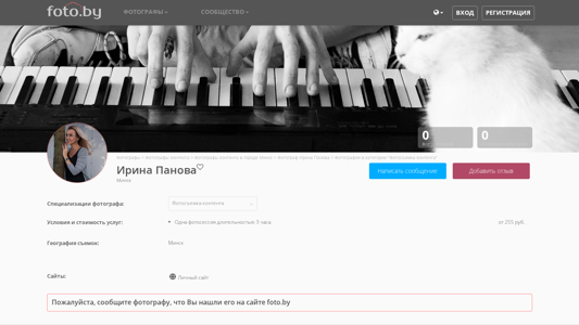 | AI-анализ | This website belongs to photographer Irina Pavana from Minsk, Belarus. The site showcases photographs in the "Content Photography" category. The photographer works as a portrait photographer in the cities of Minsk, Bobruisk, and Saint Petersburg. |