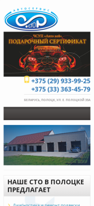 | SEO-описание | Приглашаем вас на наш автосервис в Полоцке. Наша СТО предлагает различные виды диагностики и ремонта авто; рихтовку и покраску кузовов автомобилей; услуги автомойки, шиномонтажа и многое другое. |