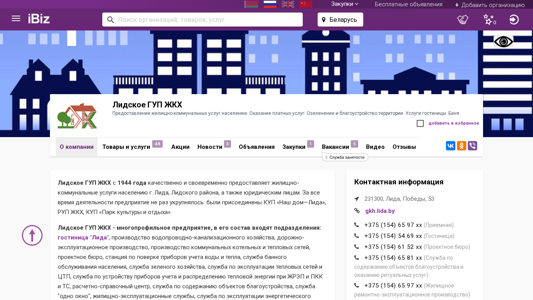 | AI-анализ | --- This online resource is dedicated to Liдское ГУП ЖКХ, a utility company based in Lida, Belarus, providing residential and commercial services including housing and communal utilities, landscaping and territory improvement, hotel services, and saunas. The website also features free classifieds for procurement and job postings. Liдское ГУП ЖКХ was established in 1944 and has since grown to include subsidiaries such as "Лида" hotel, water and sewage production, road maintenance, and more. The company offers a range of services and departments including a hotel, water and sewage production, road maintenance, boiler and heating systems, project bureau, water and heat meter station, bathroom servicing, landscaping, customer service, and more. The website also includes a contact section with a phone number and address: 23130 |