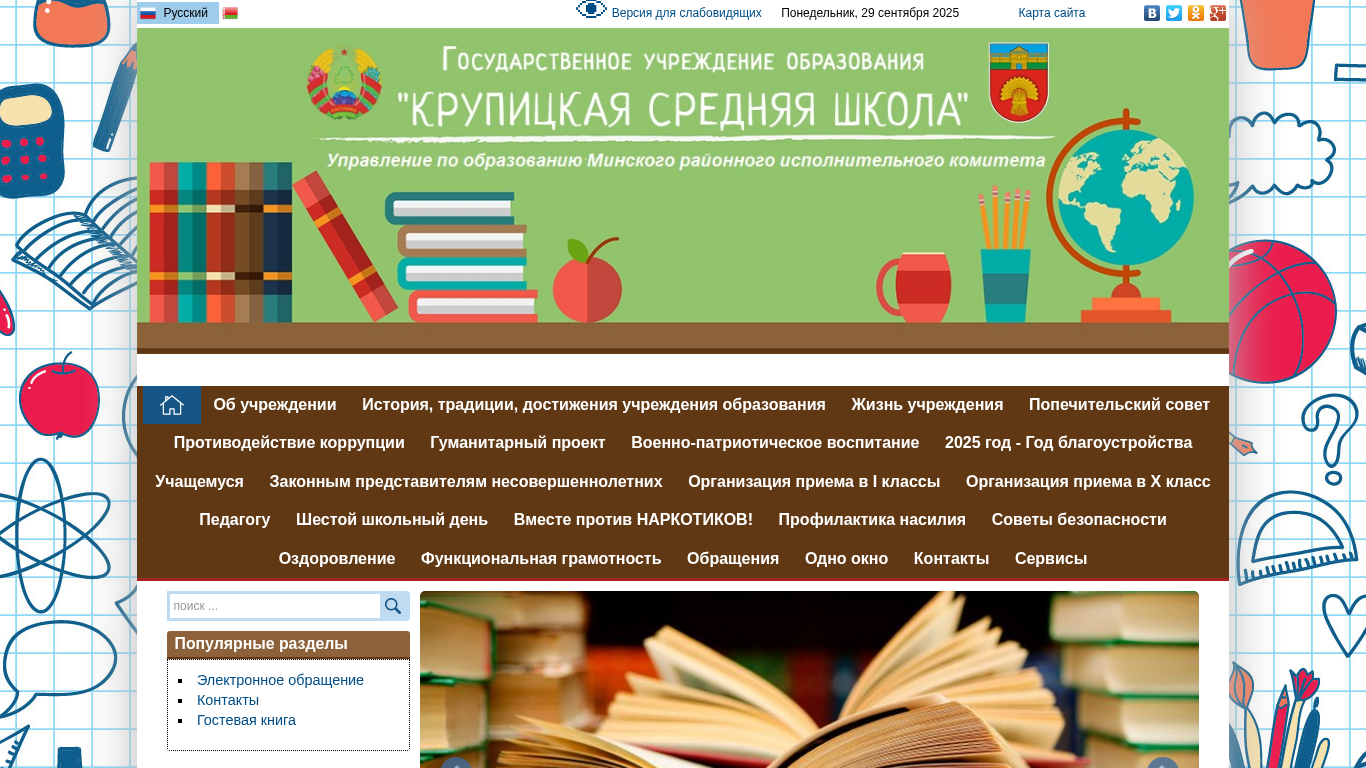 | AI-анализ | --- The web project "Крупицкая средняя школа" (Krupicya Srednaya Shkola) is a school website dedicated to providing information about the educational institution. Keywords associated with the site include "education," "read more," "Minsk region," "school," and various months of the year. The site offers sections on the history and traditions of the school, its daily life, and various projects such as anti-corruption initiatives, humanitarian efforts, and military patriotism. The site also includes information on enrollment, contacts, and popular sections. The site design is standard with a medium font size and standard line spacing. Images are not enabled, and the color scheme is black and white. The site also offers a version for visually impaired users and various settings. The site was last updated on September 29, 2025. |