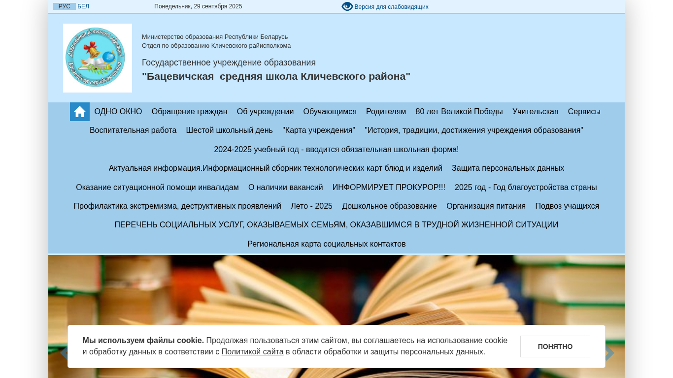 | Название / Заголовок | Бацевичская средняя школа Кличевского района |