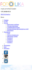 | AI-анализ | The web project "Фотолика" is a photography studio specializing in family, children, and artistic portraits. The studio offers various services including the production of school albums, photo books, and custom-made albums for special occasions. The website features a blog and a gallery showcasing a range of photographs, from children at play to professional family portraits. The studio can be contacted via phone at +375 29 826 95 33 or email at 3901351@mail.ru. The website includes a menu with sections on the studio, its services, and a blog. The title of the webpage is "Главная" (Main in Russian) and the .BY domain is "fotolika.by". |