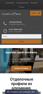 | AI-анализ | The portal 'Planetaprofile.by' is an e-commerce website for buying various types of profiles in Minsk, Belarus. The company, OOO "Planetaprofile," is an importer and official distributor of aluminum, stainless steel, and brass profiles in the Republic of Belarus. The website offers profiles for sale by phone at +375 (29) 670-09-99. The product range includes T-shaped, P-shaped, L-shaped, F-shaped, protective, and decorative profiles, as well as ventilation grilles, lift profiles, and underfloor heating profiles. The website is accessible Monday to Saturday from 9:00 to 18:00 and closed on Sundays. The product catalog includes profiles from top manufacturers. The offered profiles meet modern building norms and standards, ensuring high |
