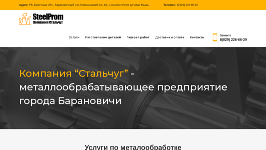 | SEO-описание | Металлообрабатывающее предприятие SteelProm ✔️ Высокоточная обработка металла ✔️ Серийное и штучное производство деталей ✔️ Собственное оборудование ✔️ Доставка по Беларуси и странам СНГ. |