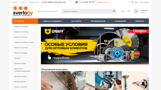 | AI-анализ | This website is an online tool store based in Minsk, Belarus. The store offers a wide range of tools for various materials including metal, concrete, and wood. Professional consultants are available to answer questions and provide optimal solutions. Products include drill bits, masonry bits, abrasives, magnetic holders, glass drill bits, pil Saw blades, sanding discs, and various types of drill bits for metal and wood. The store also offers a selection of grinding discs, sanding belts, and saw blades. The site includes a catalog, a shop with items on sale, and a question-and-answer section. The store is open Monday through Thursday from 9:00 am to 5:30 pm, and Friday until 5:00 pm. Contact information includes multiple phone numbers for customers to place orders or request a callback. The site also offers a |