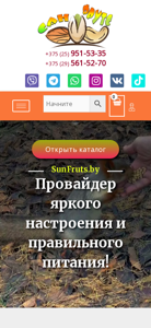 | AI-анализ | The website SunFruts.by is an online store specializing in nuts and dried fruits. The title of the website is "FoXiKo — Интернет-магазин. Орехи. Сухофрукты." The website offers free delivery in Minsk upon purchases of 55 rubles or more. The contact information includes phone numbers, Viber, Telegram, Whatsapp, Instagram, and Vk, as well as links to their blog and catalog. The website features various promotional offers, such as sales and discounts on select items. The top keywords include "rub," "цена," "sale," "quick," "view," "корзину," "первоначальная," "составляла," "текущая," "подарочные," "наборы," "набор," "подароч |