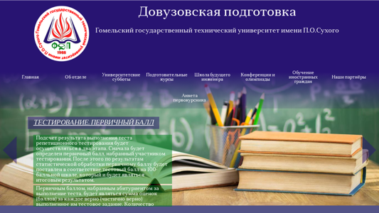 | Название / Заголовок | Довузовская подготовка | Гомельский государственный технический университет имени П.О.Сухого |