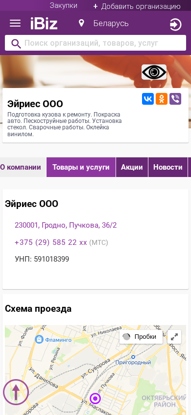 Название / Заголовок | Эйриес ООО - Подготовка кузова к ремонту. Покраска авто. Пескоструйные работы. Установка стекол. Сварочные работы. Оклейка винилом.. 230001, Гродно, , Пучкова, 36/2 |