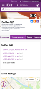 | Название / Заголовок | ГроМин ОДО - Масла и автохимия. ТО и фильтры. Тормозная система. Двигатель. Подвеска и рулевое. Коробка передач. Электрика. Кузов и элементы. Аксессуары. . 230010, Гродно, , Купалы пр-т, 72А |