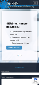 | AI-анализ | The portal BelSERS — Лаборатория прикладной плазмоники (BelSERS — Applied Plasmonics Laboratory) provides information on SERS-active substrates and related SERS measurements, research, and development. Key topics include SERS-active underlayers with a detection limit below ppt, a signal deviation of no more than 10%, and a three-year shelf life. The website offers detailed information on SERS measurements and features a contact form for inquiries. The main content is organized into sections on News, Research, Equipment, Projects, and Publications, as well as a team page and product and services information on SERS-active substrates and related technologies such as porous silicon and silicon nanowires. |
