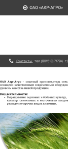 | AI-анализ | The website is for OAO (Open Joint Stock Company) AKR-AGRO, a leading producer of agricultural products in Belarus. The site provides information about the company's activities, including the cultivation of various crops such as grains, legumes, sunflowers, potatoes, and corn, as well as the breeding of livestock. The company uses modern equipment to ensure high-quality production. Visitors can find contacts for the company, including phone numbers, fax numbers, and an email address. The site also features a news section and a map with location information. Financial reports for the company are also accessible on the site. |
