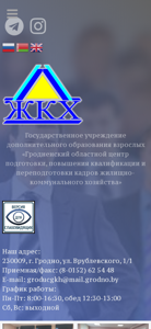 | AI-анализ | The web project "Учебный центр" (The Training Centre) is a website for the Grodno Regional Training Centre for the Preparation of Further Education and Retraining of Staff for Housing and Communal Services (Гродненский областной учебный центр подготовки повышения квалификации и переподготовки кадров ЖКХ). The website is primarily focused on educational services for the housing and communal services sector in the Grodno region of Belarus. The domain name is groducgkh.by. The website uses JavaScript for its multilingual capabilities and translation delivery network. The title of the website is "Учебный центр" (The Training Centre), and the description includes keywords related to education, training, and staff development for housing and communal services in the Grodno region. The top words on the website |