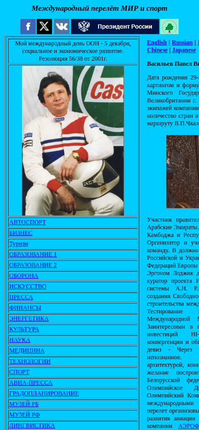 | Название / Заголовок | Международный перелёт МИР и спорт |
