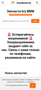| AI-анализ | The web project "Разборка БМВ Запчасти б/у BMW" (BMW Used Parts Disassembly) is a leading BMW auto parts dismantling service in Belarus, offering over 35,000 used parts for various BMW models, including e28, e30, e32, e34, e36, e38, e39, e46, e53, e60, e65, e70, e71, e83, e87, e90, f01, f10, f15, f30. The site guarantees and delivers these parts, with customer contacts provided only through the listed phone numbers to avoid scams. Keywords: BMW, used parts, dismantling, Belarus. Top words |
