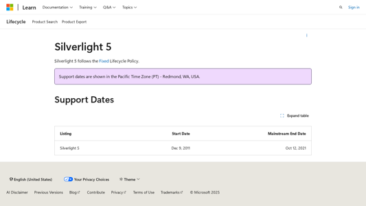 | Canonical URL | https://learn.microsoft.com/en-us/lifecycle/products/silverlight-5 |