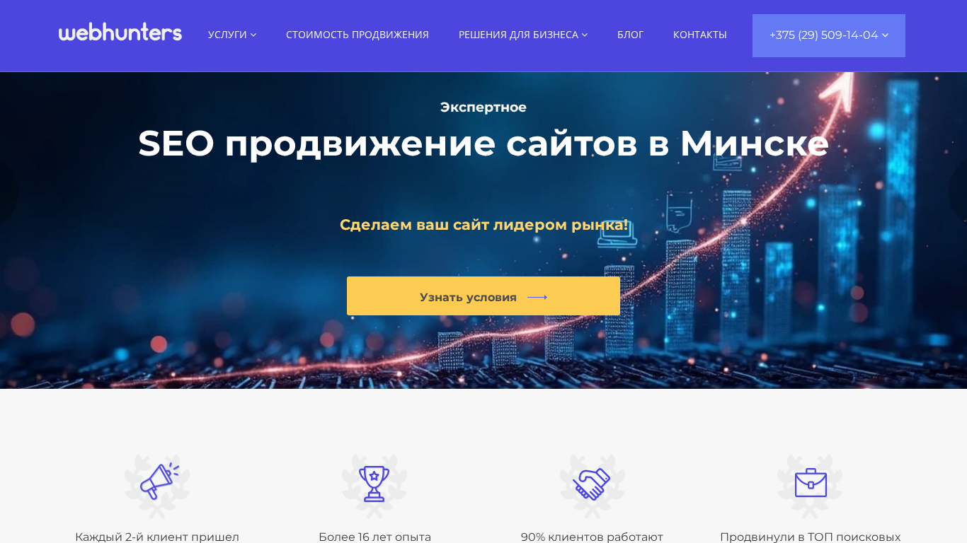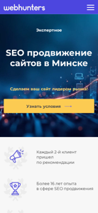 | Название / Заголовок | SEO продвижение сайтов №1 в Минске от студии WebHunters | Заказать раскрутку и оптимизацию сайта | Поисковое продвижение в Беларуси |