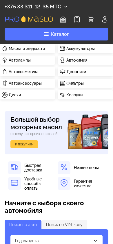 | AI-анализ | The portal Promaslo.by is an online shopping platform for automotive parts and accessories in Minsk, Belarus. Customers can purchase a wide range of auto parts, including motor oils, technical fluids, and automotive cosmetics, from a catalog of over 15,000 items. The website offers delivery within Minsk and self-pickup options, and guarantees the sale of 100% original products. Users can select their vehicle, view their garage, and add items to their cart, as well as access a personal account for managing orders and customer support. The website features categories for various auto parts, such as the engine and exhaust system, suspension and steering, and braking system, among others. Customers can also browse through catalogs by vehicle make, model, and year. Promaslo.by accepts various payment methods and offers quick delivery within M |