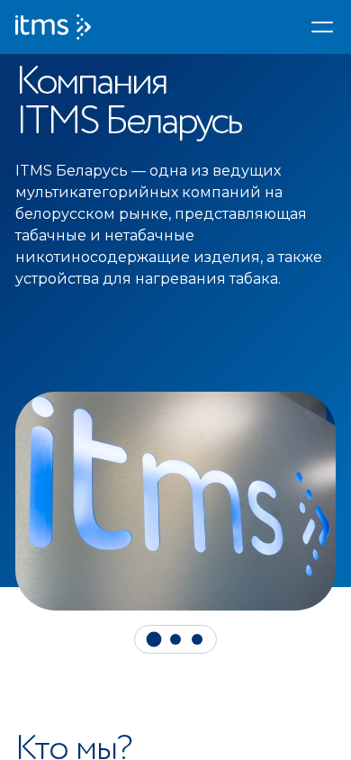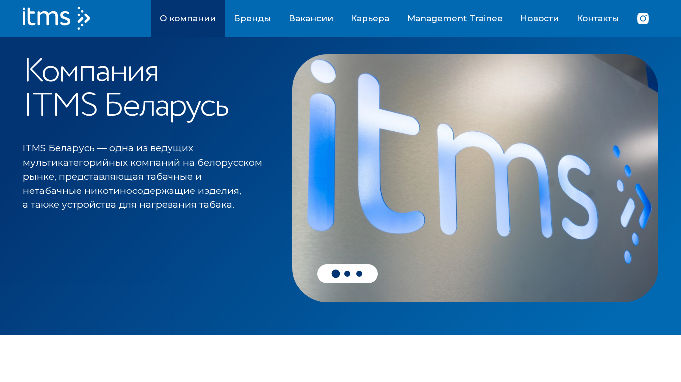 | SEO-описание | ITMS Беларусь ✓ Одна из ведущих мультикатегорийных компаний на белорусском рынке, представляющая табачные и нетабачные никотиносодержащие изделия, устройства для нагревания табака и электронные системы курения |