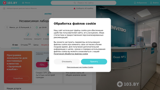 | SEO-описание | Независимая лаборатория ИНВИТРО Минск ул. Е.Полоцкой 1 – телефоны, время работы, отзывы и схема проезда в каталоге медицинского портала 103.by. |