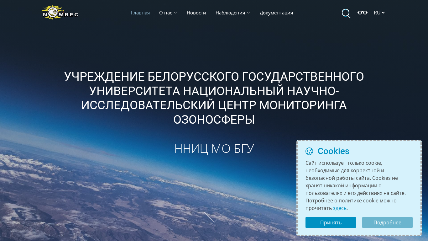 | AI-анализ | This website is the National Scientific Research Center for Monitoring of the Ozone Layer of the Belarusian State University (NNC MOBGU). The title of the website is "ННИЦ МО БГУ" and it contains information about the center's research in the field of ozone layer monitoring and related issues. Keywords associated with the website include "ozonosfery", "monitoring", "research", and "belarusi". The most frequently used words on the site are "подробнее" (more details), "бгу" (Belarusian State University), "нниц" (National Scientific Research Center), "озонового" (ozone layer), "слоя" (layer), and "день" (day). The website includes sections on general information about the center, its structure, research activities, and policies on confidentiality |