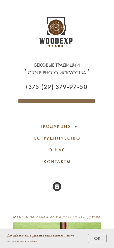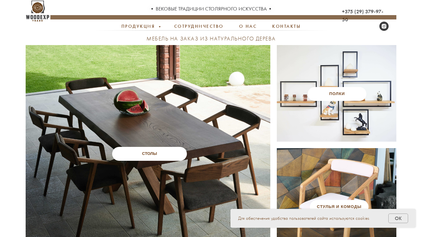 | AI-анализ | The portal Woodexp.by is a wood furniture production and sales website based in Minsk, Belarus. The site offers a wide range of wooden furniture for sale, including tables (such as journal tables, extendable tables, bar tables, office tables, and round tables), cabinets, chairs, and 3D panels for under tables and shelves. The production process for all furniture items undergoes a strict quality control from sourcing raw materials to assembling finished products. The materials used are eco-friendly, and the modern ergonomic designs showcase the natural beauty and originality of the wood. To order custom wooden furniture, customers can contact the company via phone, email, or messaging services. Upon agreement and prepayment, the construction team prepares technical documentation and begins production, with a standard turnaround time of up to 30 working days. Delivery and installation on upper |
