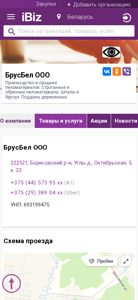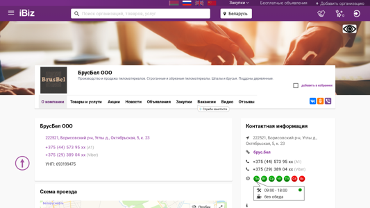 | AI-анализ | This website is for the Belarusian organization Brusebel OOO, which specializes in the production and sale of pilomaterials. The offerings include both rough-cut and cut pilomaterials, as well as spals, birch, and wooden pallets. The address and contact information for the company are provided, along with opening hours, and the company is located in the Borisovsky district of Minsk, Belarus. The website also includes a map for directions, and offers various services and categories such as news, vacancies, and customer reviews. The domain is registered under the .by extension and is hosted on the Ibiz platform. |