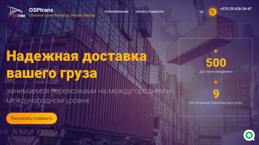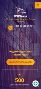 | AI-анализ | The web project "International Cargo Transportation by Road in Belarus, Minsk, RB" offers international cargo transportation services in Belarus (RB), Minsk to other countries. The transport company "OSPtrans" ensures affordable pricing for these services. Please fill in the required fields: Your name, Phone, Email, and your comment. The user agreement must be checked before submitting. Services include cargo transportation, expedited transport services, cargo transportation from Belarus to Russia, cargo transportation to Moscow, cargo transportation to Ulyanovsk, cargo transportation to Kazan, cargo transportation to Ivanovo, cargo transportation to Nižny Novgorod, cargo transportation to Kirov, cargo transportation to Yaroslavl, transportation of dangerous goods, transportation of consolidated cargo, delivery of complete cargo, transportation of personal items, apartment moving, calculation of costs, procedure for working, documents, contacts |