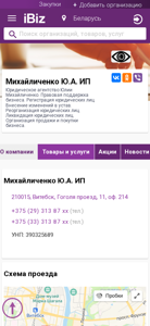 | AI-анализ | This online resource is a legal agency named Михайличенко Ю.А. ИП (Juriatic Service of Yulia Michailichenko). It provides business support through various legal services, including registration of legal entities, modification of company charters, reorganization, liquidation, and facilitation of business sales and purchases. The agency is located in Viciebsk, Belarus, at Гоголя проезд, 11, оф. 214. The contact numbers for the agency are +375 (29) 313 87 xx and +375 (33) 313 87 xx. The Unified State Register number of the agency is 390325689. The website offers various services related to legal issues for businesses. |