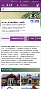 | AI-анализ | The portal Maloritales.ibiz.by is a state forestry enterprise called Maloritsky Leshoz. The company offers round timber of coniferous, birch, and deciduous trees. Rentals of forest harvesters, tractors, and a MAZ automobile are also available. Obtained timber is processed into untrimmed and trimmed timber of coniferous trees, as well as firewood. The portal further mentions an ecological trail. The organization's address, contacts, and location in the city of Malorita, Sovetskaya Street 138, are provided. |