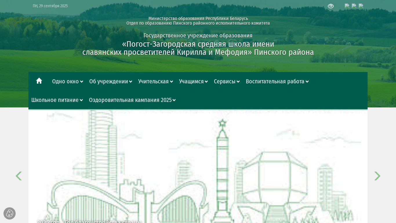 | Название / Заголовок | «Погост-Загородская средняя школа имени славянских просветителей Кирилла и Мефодия» Пинского района |