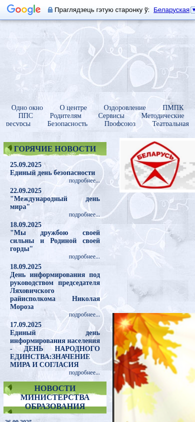 | AI-анализ | This website is an educational resource for people with hearing impairments, offering a text interpretation service provided by Google One Window. The site covers various topics related to deafness, including language, assistance, and rights. There are sections on the center for rehabilitation, PMPK and PPS services for parents, methodological resources, safety, union, and theatre activities. It also provides information on inclusive education, proforientation, and personal data protection. News and announcements from the Ministry of Education are featured, including the schedule for centralized testing in 2026. The site includes a chat-bot for reporting temperature issues in educational institutions and a Republican competition called "Opening Belarus" to commemorate the 80th anniversary of Victory in the Great Patriotic War. The domain is ckro.lyahovichi.edu.by. |