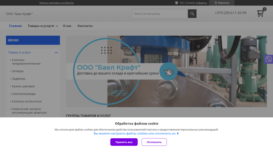 | AI-анализ | The web project "ООО Баел Крафт" is a Belarusian company website that offers contacts, products, and services, along with their prices. The main product categories include various types of valves such as pre-protective, ball, and diaphragm valves, as well as pumps, electro-driven valves, and chemical control valves. The company also provides boiler room and heat exchange equipment. The website includes a contact section with the company's address, phone number, and email address. The business was registered in 2020 and operates from Minsk, Belarus. The website is accessible at armtorg.by. |