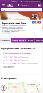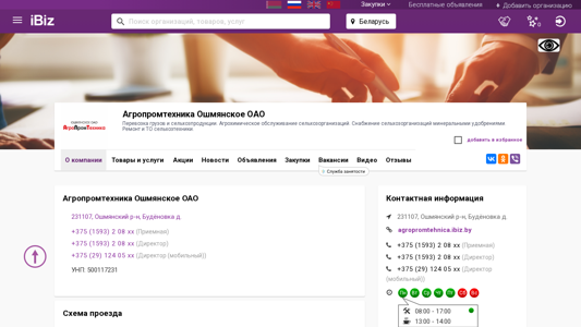 | AI-анализ | This website is for Agropromtechnica Oshmyanskye OAO, a company located in Budyonovka village, Oshmyansky district, Belarus. The website offers services related to cargo transportation and delivery of agricultural products, agrochemical services for agricultural organizations, and the supply of mineral fertilizers. Additionally, the website mentions repair and maintenance services for agricultural machinery and equipment. The contact information, including phone numbers and a map, are also provided on the website. |