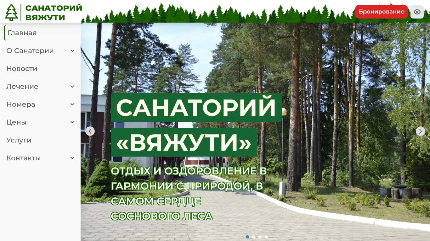 | SEO-описание | Восстановите здоровье в санатории «Вяжути»! Широкий спектр лечебных программ, опытные врачи, современное оборудование. Оздоровительный отдых в Беларуси. |