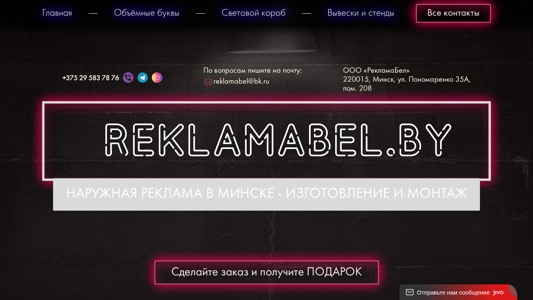 | AI-анализ | The portal Reklamabel.by specializes in the production, sale, and installation of various types of outdoor advertising: light boxes, three-dimensional letters, signs, and stands. |