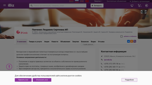 | Название / Заголовок | Панченко Людмила Сергеевна ИП - IP CREDO - белорусские и евразийские патентные поверенные. Регистрация ИС. Управление ИС. Защита ИС. Оценка ИС. Проверка уникальности. Разработка товарного знака. Юридические услуги. . 220029, Минск, , Коммунистическая, 36-2 |