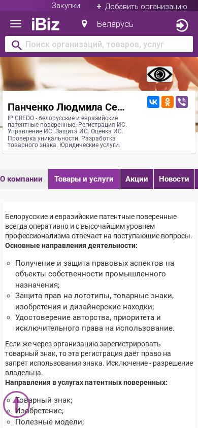 | AI-анализ | The website IP CREDO is a Belarusian legal firm specializing in intellectual property (IP) services. The company offers a range of IP-related services including registration, management, protection, evaluation, and uniqueness check for trademarks, patents, and industrial designs. They also provide services for the development of trademarks and offer various legal services. The website includes sections for company information, products and services, news, and vacancies. The contact details and address for the company are provided as 220029, Minsk, Kommunisticheskaya, 36-2. Keywords associated with the website include 'services', 'Belarus', 'patent', 'registration', and 'trademark'. |