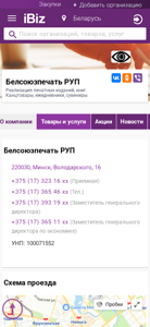 | AI-анализ | The website is for Belsoyuzpechat RUP, a company in Minsk, Belarus, specializing in the sale of printed materials, books, office supplies, calendars, and souvenirs. The address is listed as Володарского, 16. Contact phone numbers include +375 (17) 323 16 xx (reception), +375 (17) 365 46 xx (general), +375 (17) 393 19 xx (deputy director), and +375 (17) 365 11 xx (deputy director of economics). The company's opening hours are Monday through Friday from 08:30 to 17:30, and Saturday and Sunday are closed. The website also includes a schema |