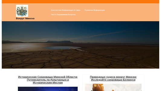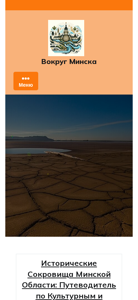 | AI-анализ | The web project "Around Minsk — Adventures, Culture and Nature of Minsk Region" provides a guide to historical and cultural sites, natural wonders, and local culinary traditions in Minsk, Belarus. The title reflects the content's focus on exploring the unique region where history and culture intersect, revealing hidden stories and treasures. Keywords: Minsk, region, history, culture, nature, tourist attractions, Belarus. Top words: around, region, Minsk, area, discoveries, guide, historical sites, cultural sites, natural wonders, local delicacies, urbanism, menus, information. The website features sections on historical treasures, natural attractions, and local delicacies in Minsk, offering detailed information and a comprehensive guide for visitors. It also includes a section on contemporary Soligorsk, exploring its unique blend of historical |
