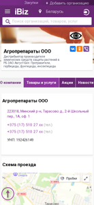 AI-анализ | The portal Agropreparat.ibiz.by is a distributor of chemical protective agents for plants in Belarus by ZAO August-Bel, specializing in fertilizers, pesticides, and other agricultural products. The website includes free announcements for purchases, as well as information on the company, its products and services. The contact details and location map are also provided. The business hours are from 9:00 to 18:00, Monday to Friday, with weekends being holidays. The domain is registered under the .by top-level domain and is located in the Minsk region, specifically at 2-й Школьный пер., 1A, office 1. The website's keywords include 'agropreparat', 'August-Bel', 'agriculture', 'pesticides', 'fertilizers', and 'Belarus'. |