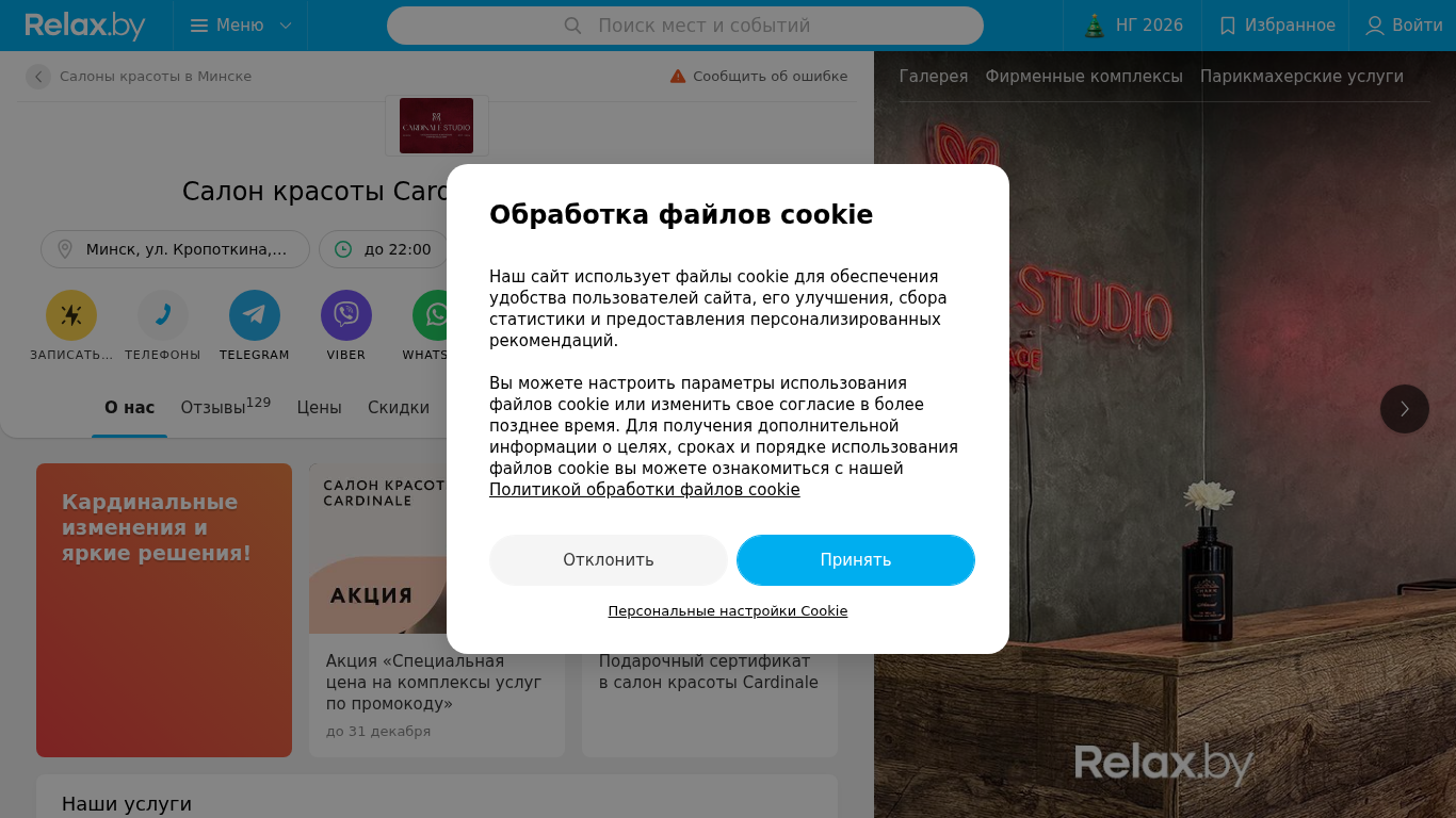 | Название / Заголовок | Cardinale (Кардинале) салон красоты в Минске, ул. Кропоткина 59 – отзывы, время работы, телефоны |