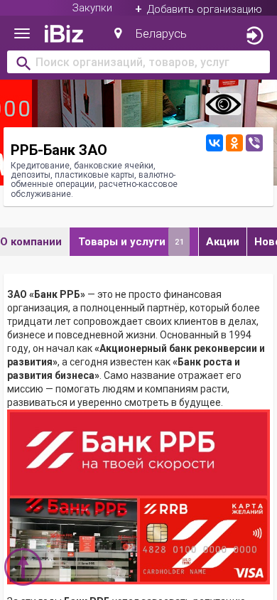 | Название / Заголовок | РРБ-Банк ЗАО - Кредитование, банковские ячейки, депозиты, пластиковые карты, валютно-обменные операции, расчетно-кассовое обслуживание.. 220034, Минск, , Краснозвездная, 18 |