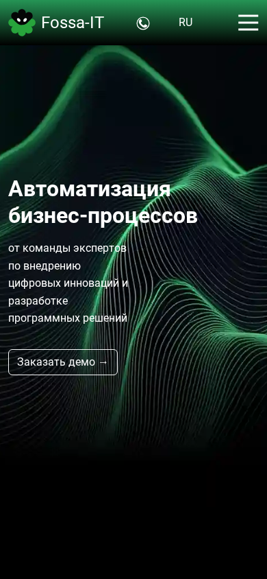 | AI-анализ | This online resource, titled "Автоматизация бизнес-процессов в Минске, Москве, Алматы | Fossa-IT," is the official partner of SimpleOne. The website focuses on business process automation, software development, and support in Belarus, Russia, and Kazakhstan. Users can request a demo today. The content is available in Russian and English, and the site includes sections on services, contacts, and a call to action to request a demo. Fossa-IT is a team of digital innovation and software solution experts, partnering with SimpleOne and ServiceNow to automate and digitalize business processes for companies of various scales. The team ensures the security of the entire infrastructure and closely monitors the system and software. Their goal is to adapt and configure the system to meet unique business goals and tasks. The website offers services in software development, process |