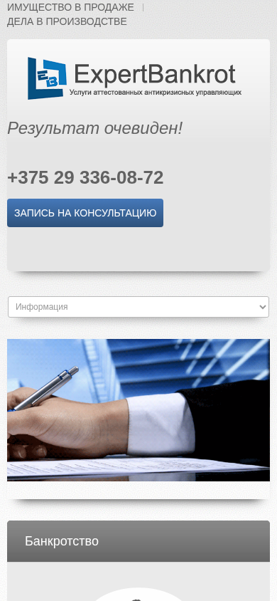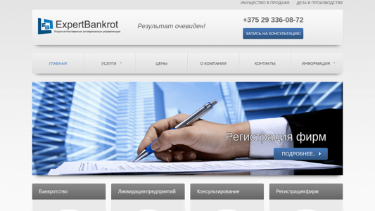 | AI-анализ | The portal expertbankrot.by offers services for the liquidation and bankruptcy of organizations in Minsk. The website provides detailed information about the process, registration, and pricing for various forms of business ownership. The company, ExpertBankrot, has been successful in handling complex projects related to bankruptcy and liquidation for over five years. Ninety-five percent of their clients express satisfaction with the service, and seventy-six percent of projects are completed within six months. Ninety-one percent of businesses have been successfully removed from the Unified State Register, and ninety-two percent of their assets have been successfully liquidated. Seventy-five percent of debtor obligations have been recovered. The website also offers free consultations for questions regarding bankruptcy and liquidation. |